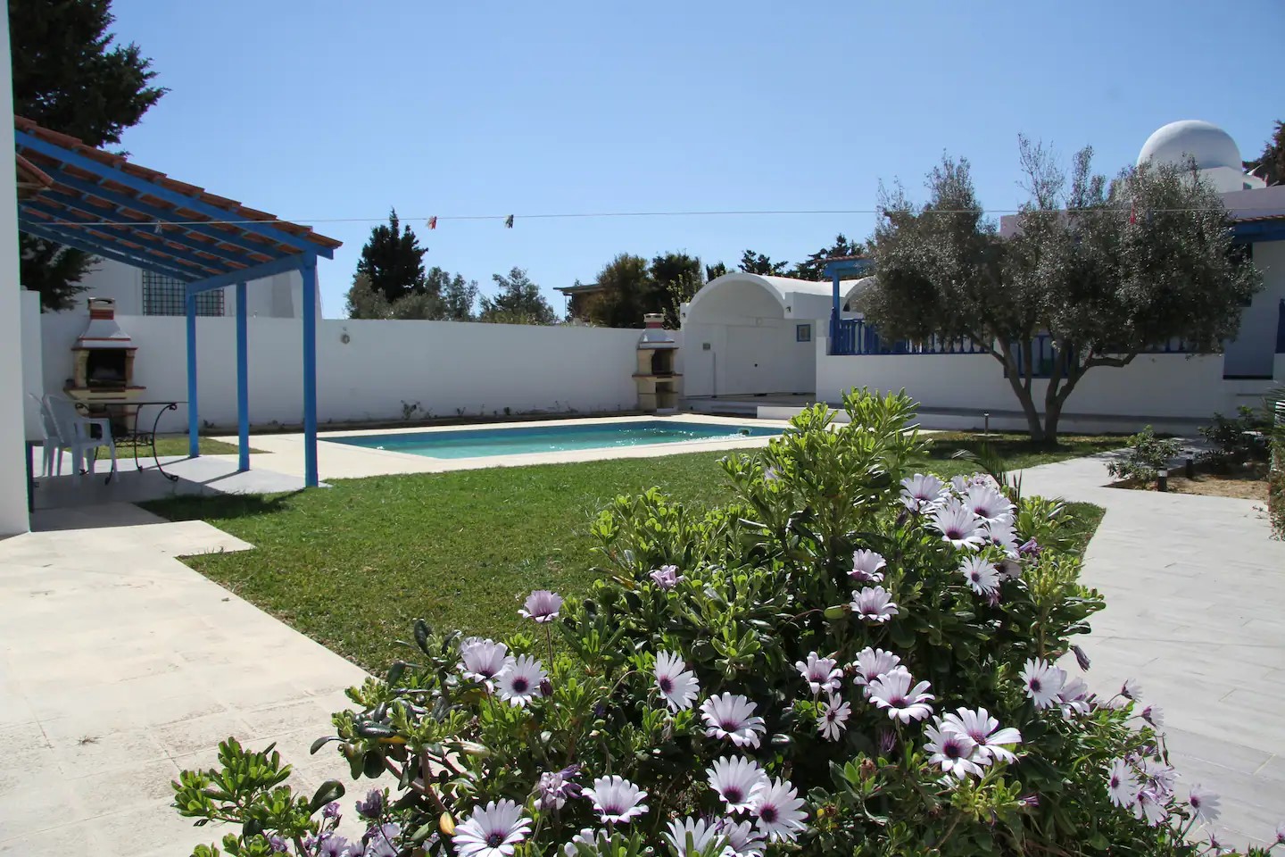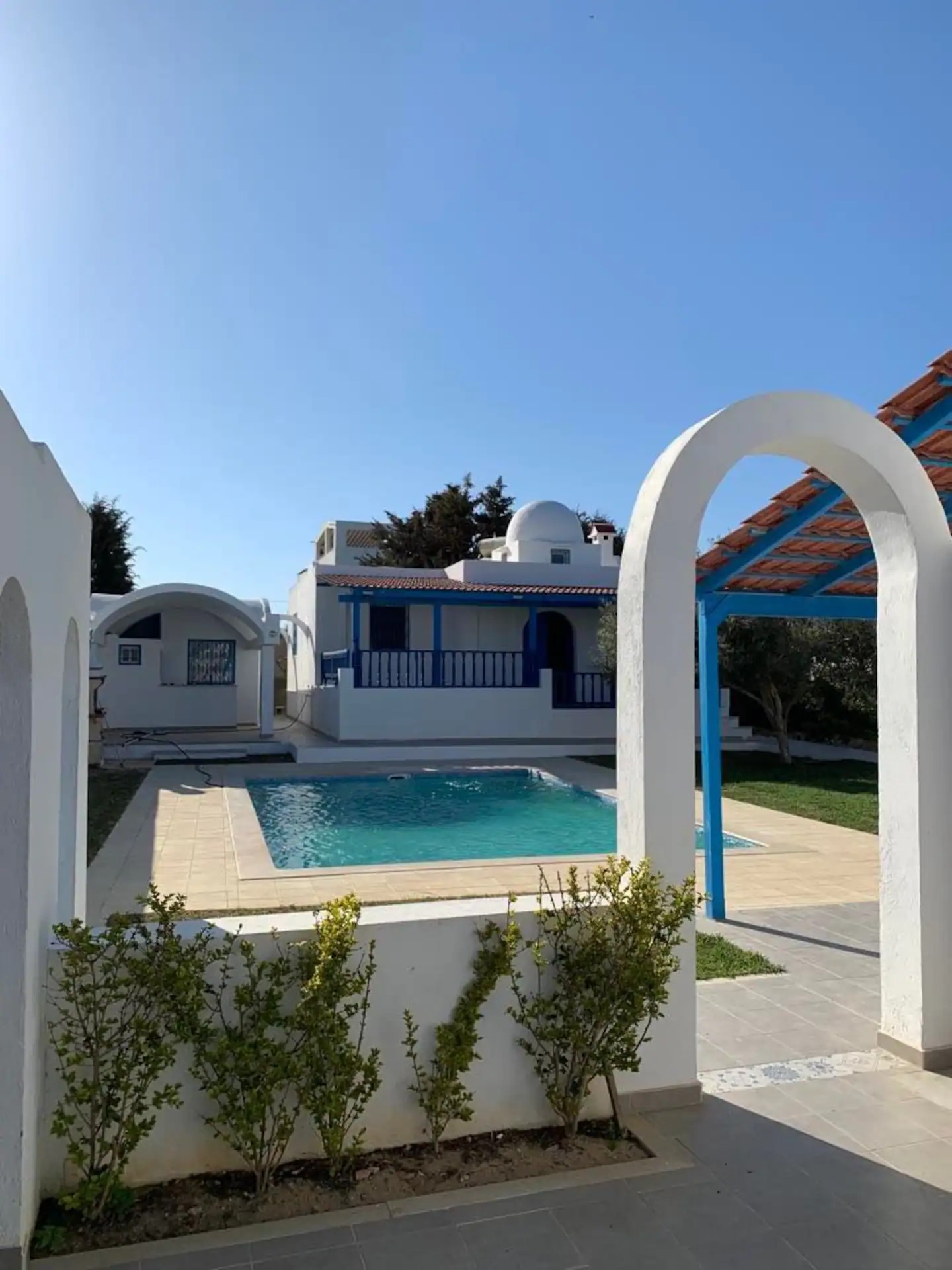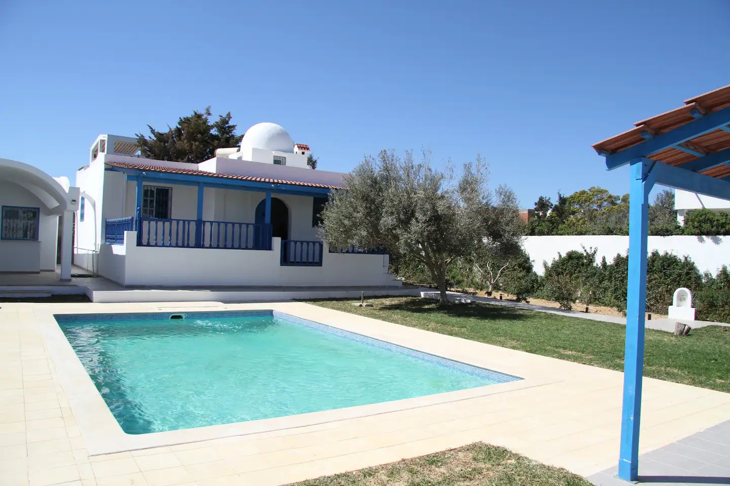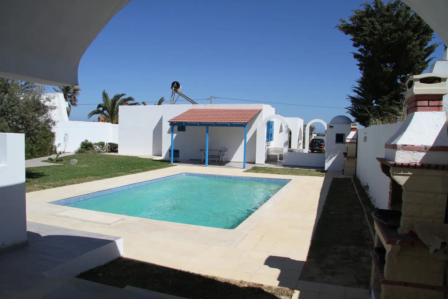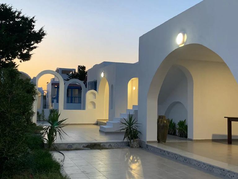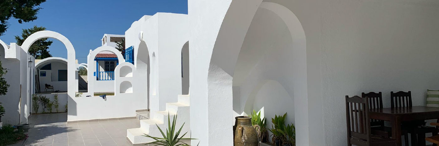 In Kerkouane wohnen Sie in zwei Mediteranischen, modernen und besonders Kinderfreundlichen Häusern. Die Ferien-Häuser bieten ihren Gästen alles, was sie brauchen, um sich rundum wohl zu fühlen. Ferienhaus El Karma bietet Platz für 4 bis 12 Personen, das Ferienhaus El Goba kann bis zu 12 Personen beherbergen. Die Ferienhäuser in Kerkouane liegen nur wenige Meter vom Strand entfernt. Zwischen dem Strand und den beiden Ferienhäusern liegt ein kleines Wäldchen. 1 km entfernt liegen die berühmten archäologischen Stätten von Kerkouane, die vermutlich einzige erhaltene Punische Stadt. Berühmt ist die gute Küche vieler Fischrestaurants und der Muskat Wein. 11 km entfernt, in Richtung Haouaria, liegt Kelibia, eine historisch bedeutende Küstenstadt mit etwa 50.000 Einwohnern. Ein Auto ist notwendig, Parkraum bietet die Einfahrt des Hauses. Die Anfahrt vom Flughafen Tunis-Carthago oder Enfidha geht in Richtung Kelibia und ist ca. 115 km entfernt.